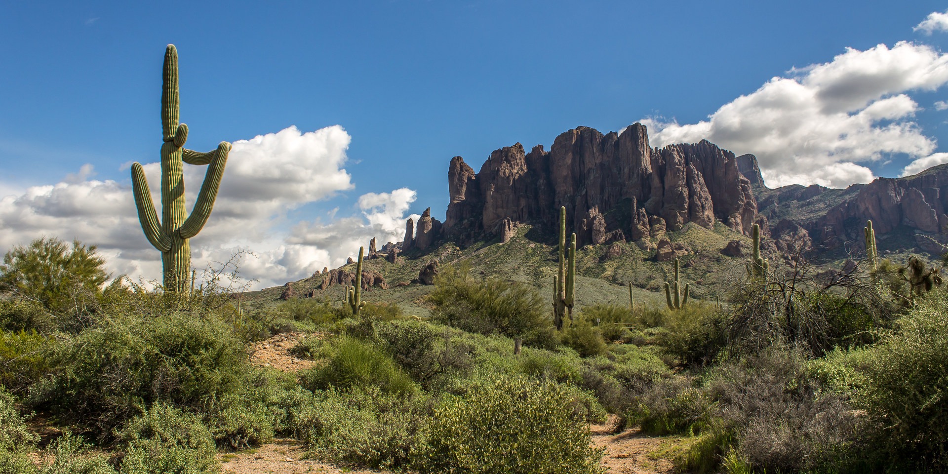 Lost Dutchman State Park is nestled into the southwest side of the Superstition Mountains. Located just 5 miles from Apache Junction in the Tonto National Forest, this park has become a local favorite for a weekend getaway. Whether you're looking for a day of hiking or mountain biking or a nearby campground with a beautiful mountainous backdrop, Lost Dutchman State Park is the perfect place.