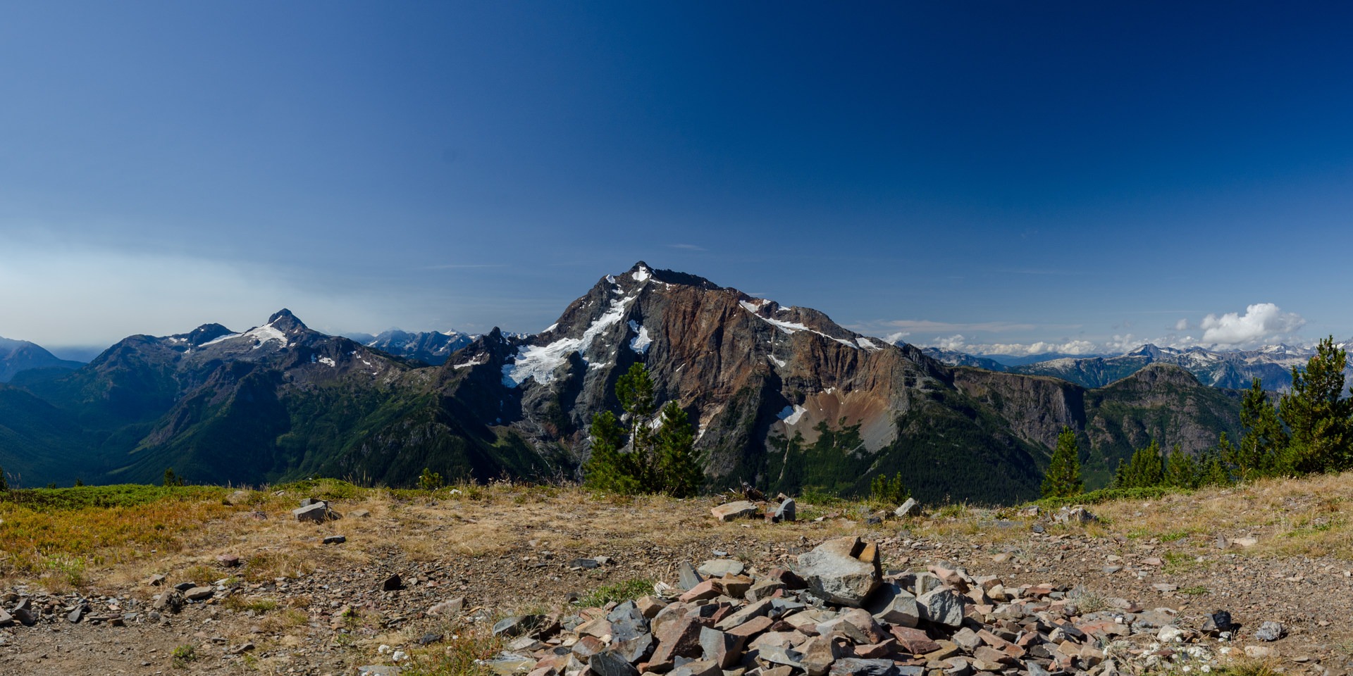 Passing Chopaka Lake, the PNT continues to gradually gain elevation toward Haig Mountain and stays at between 4,000 and 7,500 feet in elevation for the next several days. In the Pasayten Wilderness, the terrain changes dramatically into broad vistas, tall crags, deep valleys and forests of fir trees. Cathedral Pass, a stone's throw from Canada and sitting at 7,556 feet, is the highest elevation reached over the entire 1,200 miles of the PNT.