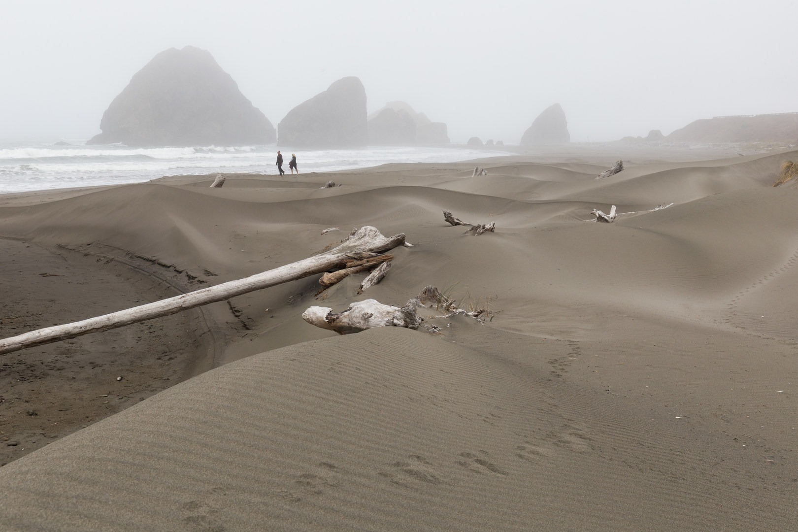 Pistol River Beach is a 3.25-mile long stretch of soft sand and dunes along the rugged Southern Oregon Coast and is connected to Myers Creek Beach. Because the entirety of Pistol River Beach is so long, there are three main access points: North, Middle, and South. The north section is most notably marked by two massive sea stacks towering over the beach. Thousands of years of erosion of softer sediments left these pillars of rock standing today. Try to imagine what this coastline might look like after another thousand years of erosion.
