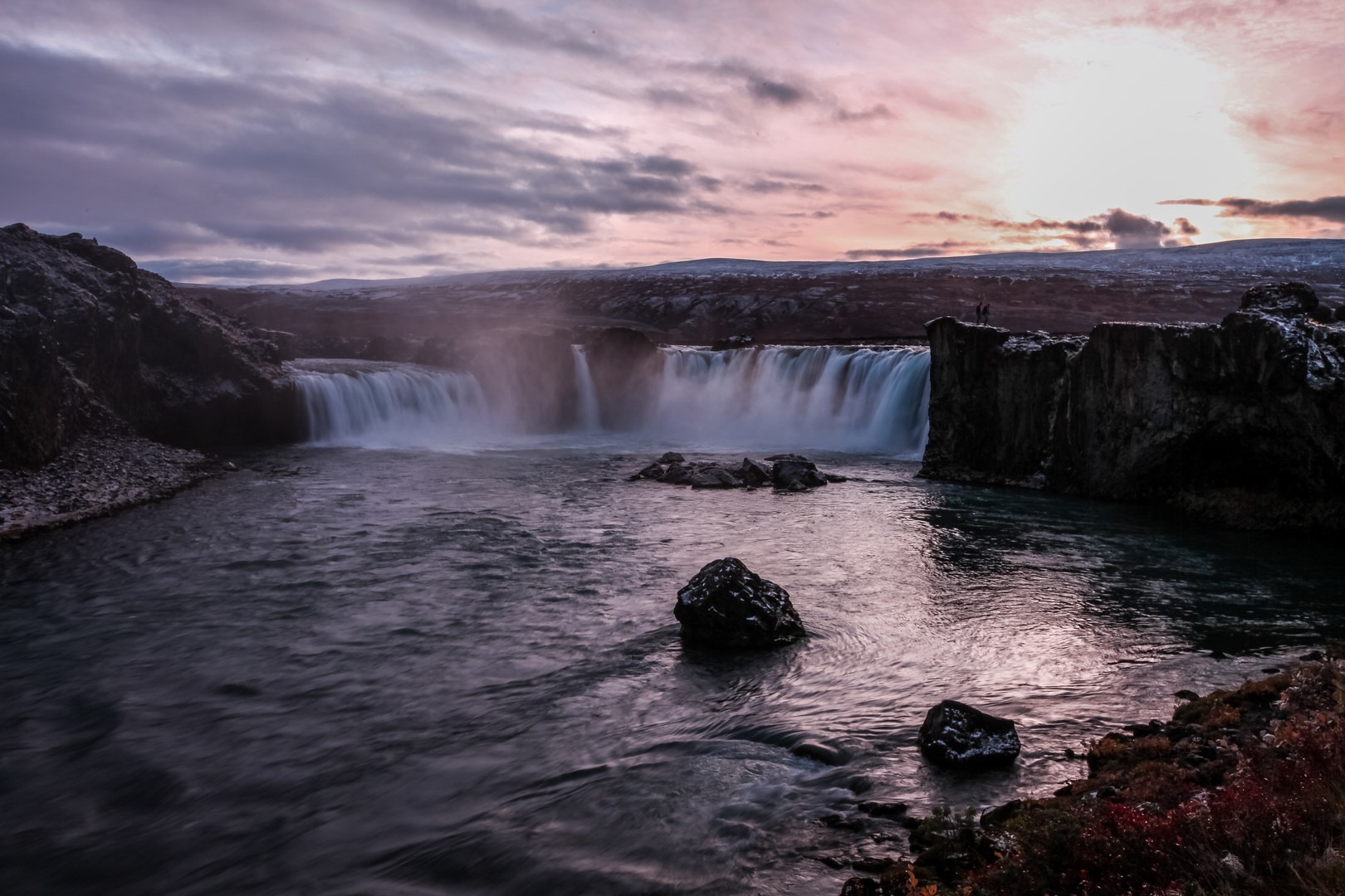 During World War II, the MS Goðafoss, named after this waterfall, was an Icelandic ship used to transport both freight and passengers.  Unfortunately, it was sunk by a German U-Boat, which resulted in a great loss of life.