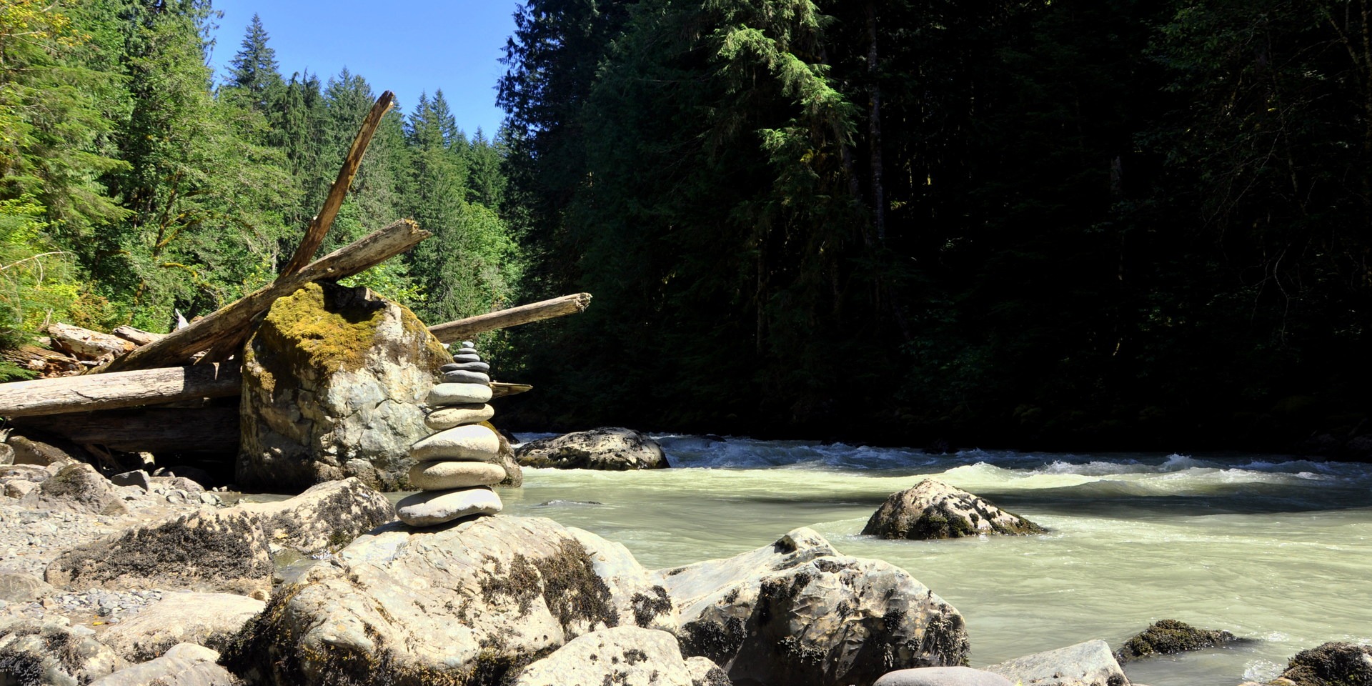 Horseshoe Bend Trail follows the North Fork of the Nooksack River for a few miles through old-growth forest. While the trail doesn't lead to a destination per se, at 0.6 miles you will find the former site of a stone bench where the Nooksack puts on quite a show as it crashes over and around huge rocks. A little further up, a rocky beach provides river access. Visit during rainy months when the river is really raging, or come in the summer to watch rafters and kayakers braving the rapids.