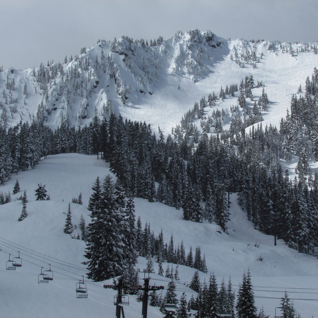 Gaining the summit ridge requires a short but bold climb up past the lift cabin. Once you are on top, skirt east along the crest. Large cornices often line the ridge, so refrain from taking a peek over the cliffs. You will have plenty of scenery to enjoy once the summit is reached, with the Glacier Peak Wilderness to the north, Jim Creek Mountain and the Mill Valley running to the east, and the Skykomish Valley peaks back to the west. You'll also have a decent view of Mount Hinman and Mount Daniel rising out of the Alpine Lakes Wilderness to the south.