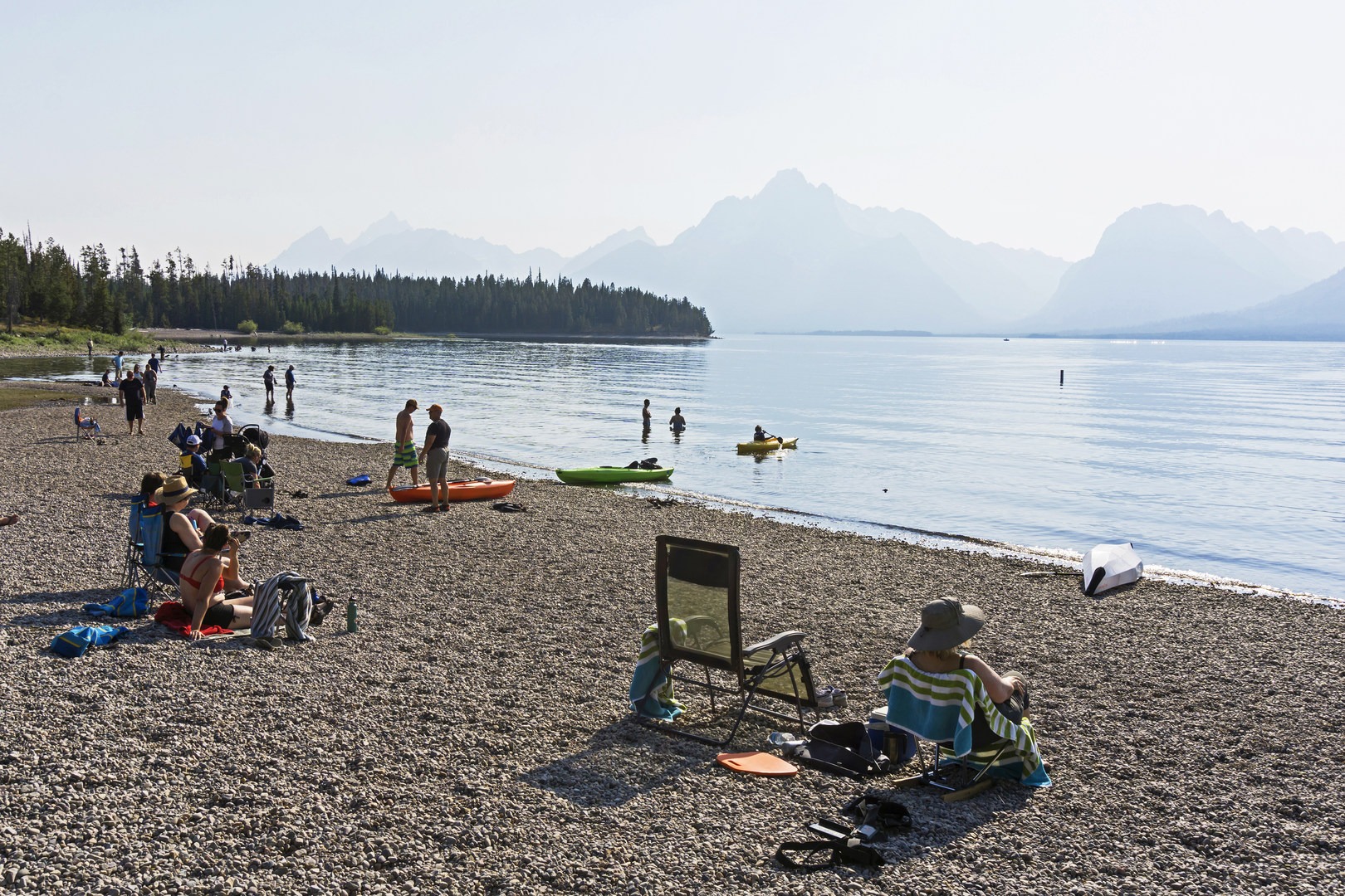 Make sure to bring some footwear you can get wet; the rocks on the beach are large and square. There are kayak and boat rentals at the nearby marina, and you can pitch a tent at the Colter Bay Campground. The Colter Bay Lakeshore Trail and the Hermitage Point Trail are both nearby, and there are two small islands not too far off the shore that are great destinations for a kayak or stand-up paddleboard trip.