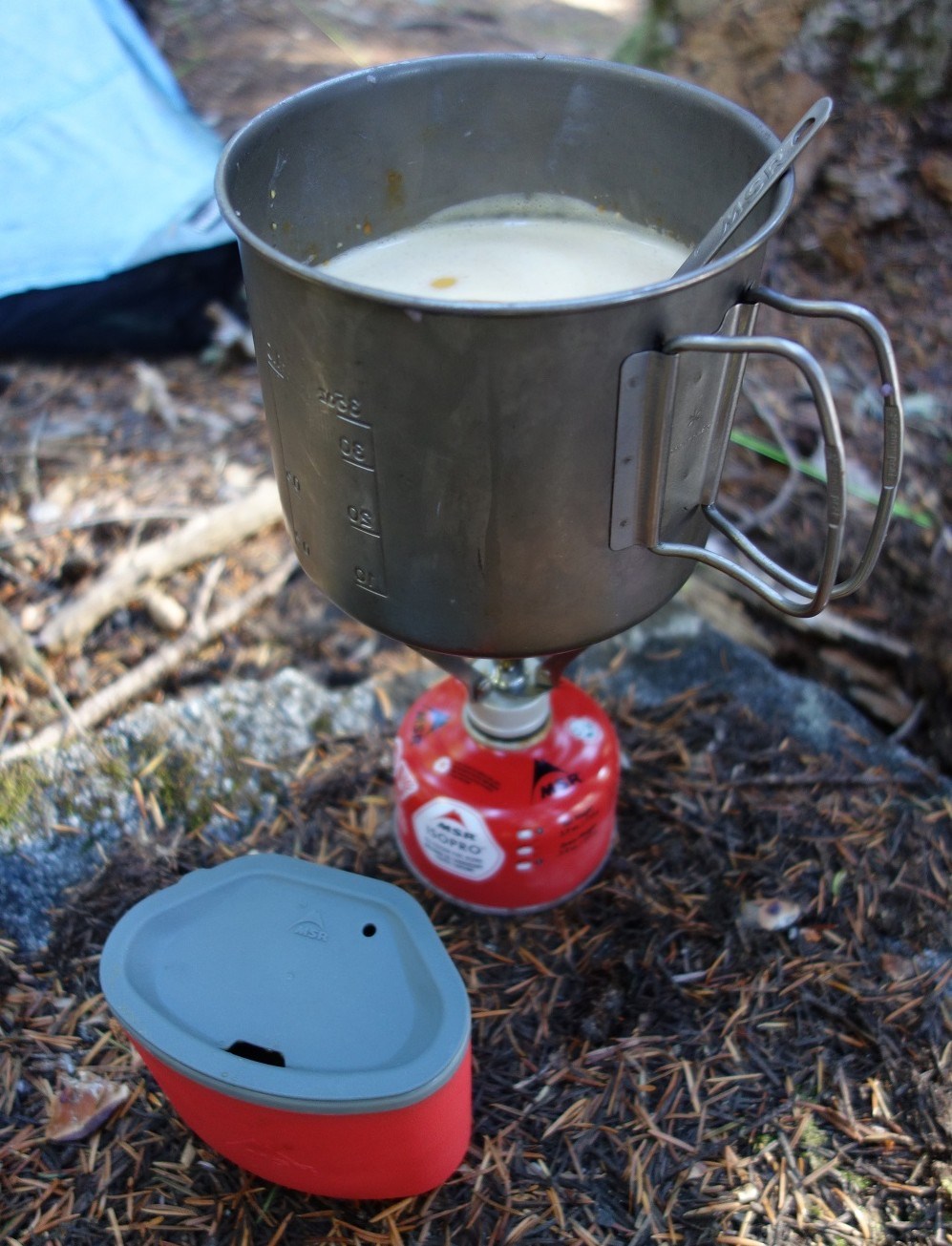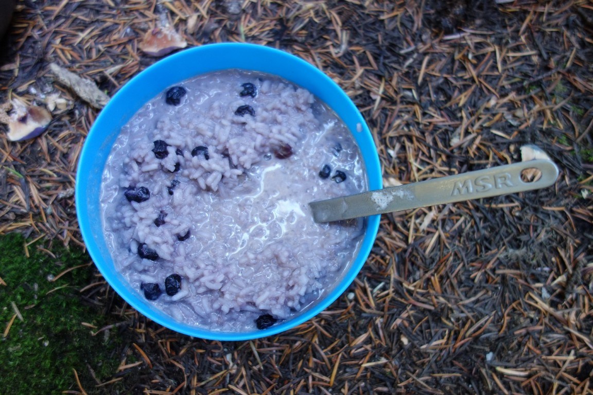 That first breakfast was for those who like something savory in the morning. For the members of our party with more of a sweet tooth, I made up a batch of backcountry rice pudding.