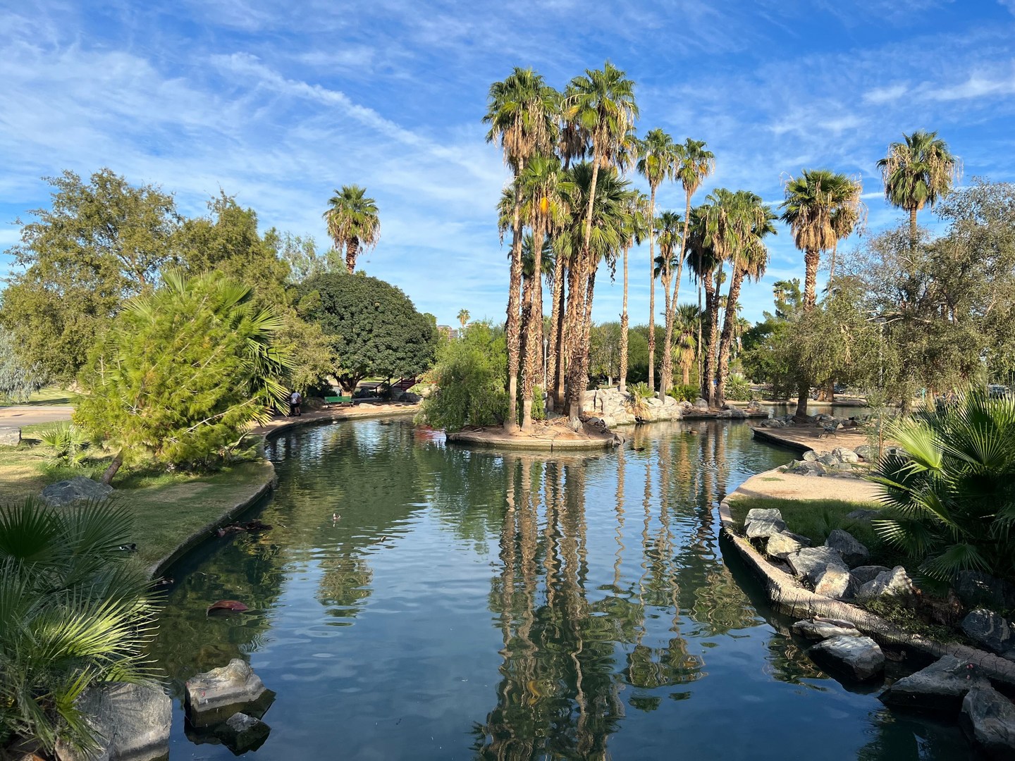 The lagoon is unique to Encanto Park and is a wonderful place to enjoy an afternoon.  Even in summer this park provides plenty of shaded spots to get out of the heat and has something for just about everyone. For people who are new to the outdoors the easy paths are a great introduction and there is potable water and restrooms available for use. This hidden gem in the city is a wonderful place to spend an afternoon.