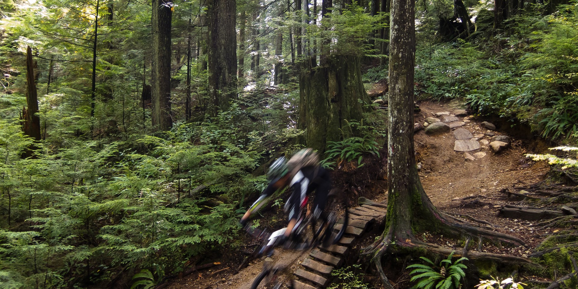 Officially the highest trailhead on Fromme Mountain, 7th Secret is worth the climb. Newly reinforced and updated, the trail is similar to a cobblestone road that twists through the forest. The trails can often deteriorate over a season without proper care and maintenance, so many rocks and boulders have been buried into the trail for support.