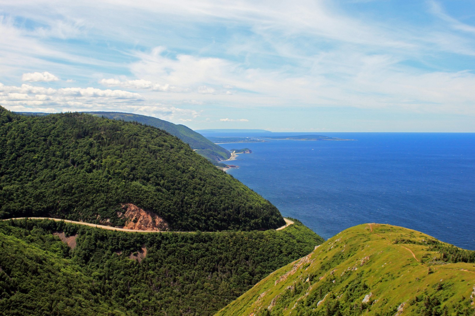 The highlands are known for being a beautiful area where the mountains meet the sea, and that description is spot on. From the east to the west of the park, if you're along the coast, you're in the mountains, as well. The mountains meet the Atlantic Ocean on the east, and the Gulf of St. Lawrence on the west. The park is part of the Cape Breton plateau, giving it the drop off from the highlands to the ocean.