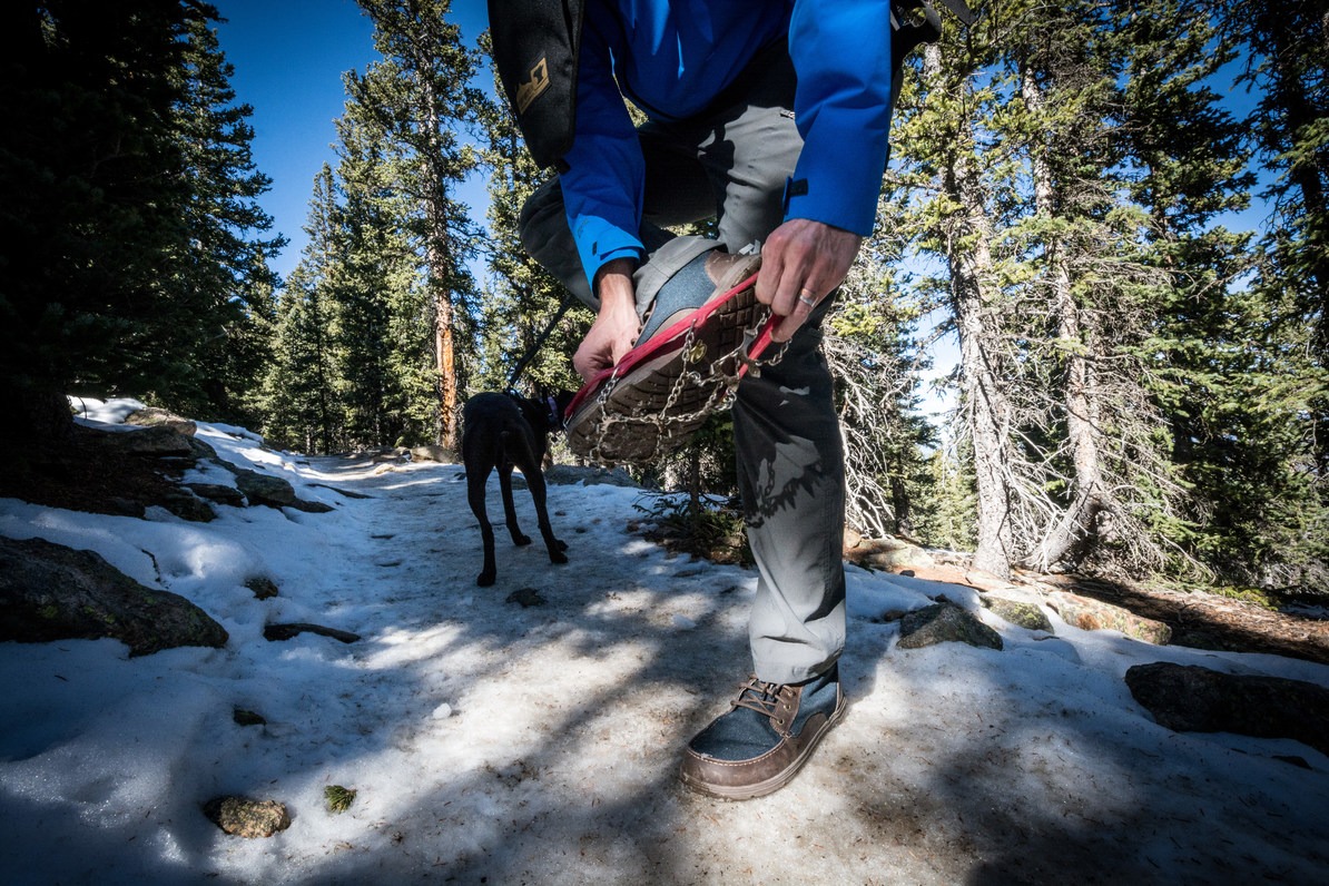 Getting some extra traction at the trailhead. Photo by Jason Leach.