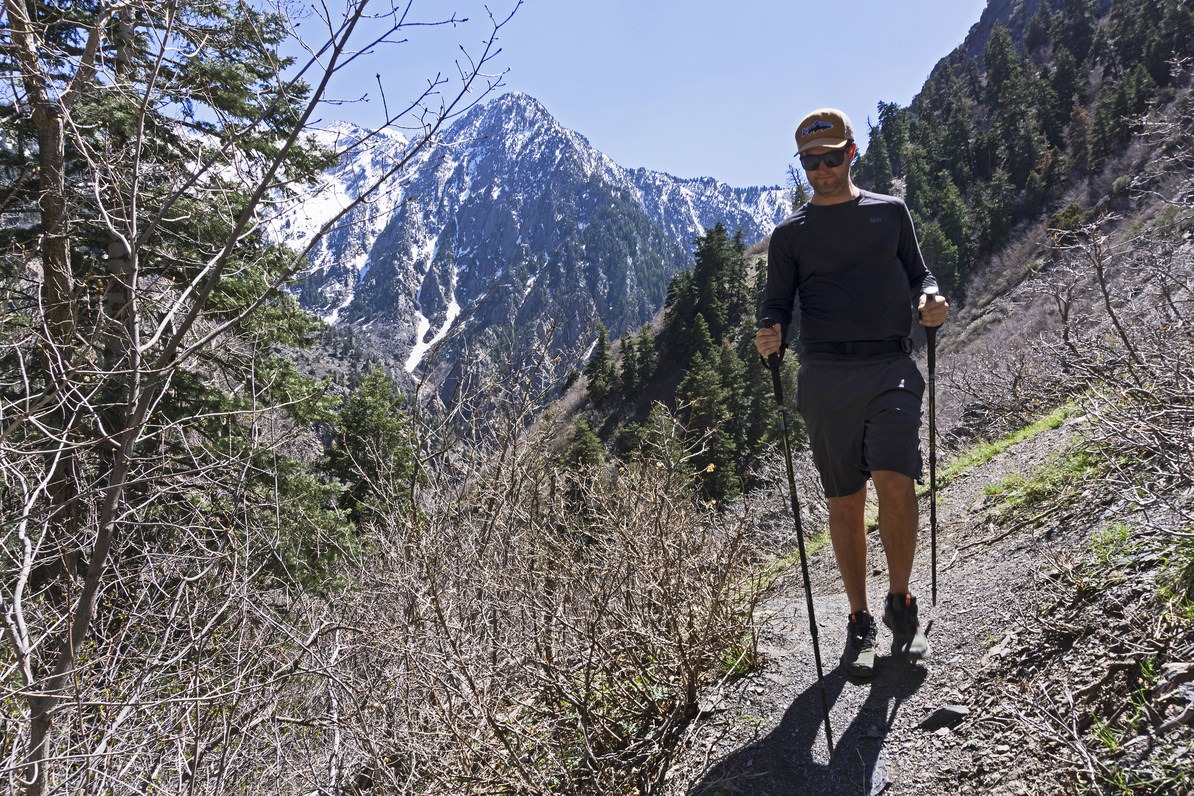 Hiking in Big Cottonwood Canyon with Mountainsmith's Carbonlite Pro Trekking Poles. Photo by Kyle Jenkins.