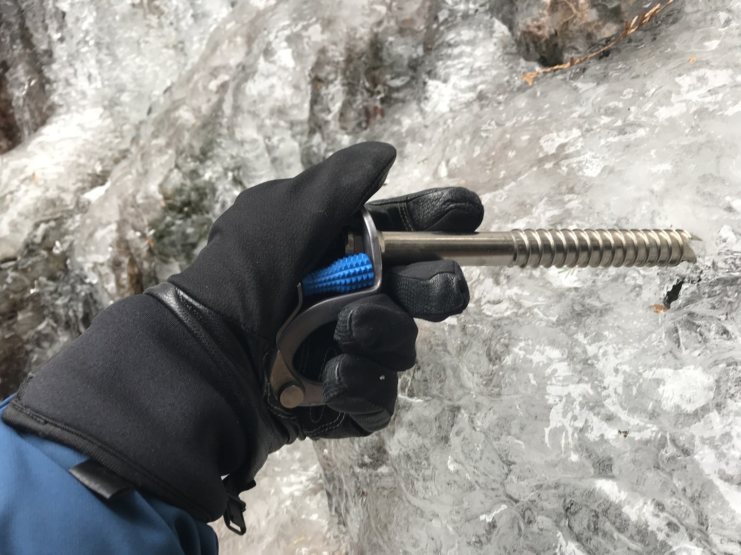 The worst part of ice climbing, after the screaming barfies, is placing screws. It’s awkward and always a little nerve-wracking, especially when you are new to leading ice or just tired.