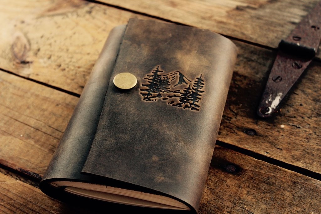 Customize your adventure journal with one of Portland Leather Goods' custom stamped leather journals. Pick one of their outdoorsy designs or create your own.
