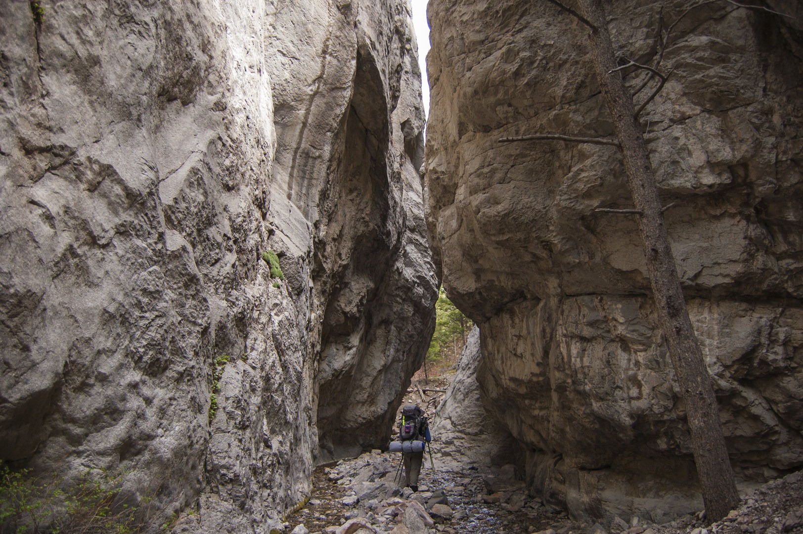 The Refrigerator Canyon Trail, or Trail 259, passes through a sheer and narrow limestone canyon en route to the Gates of the Mountains Wilderness. During hot summer months, this canyon stays cool thanks to the small stream and wind flowing through the canyon. The trail extends past the canyon and hooks onto other trails, providing numerous opportunities for longer shuttle hikes. The hike here is a 15-mile shuttle hike from Refrigerator Canyon to the Hunter’s Gulch Trailhead by Nelson, Montana.