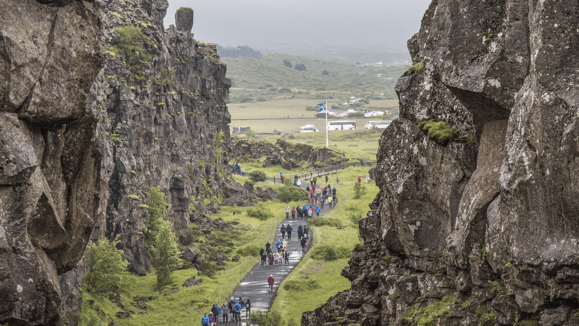 Serving as one the most historical, cultural, and geologically significant places in Iceland, Þingvellir is a stop that can’t be missed. The national parliament of Iceland was established here over 1,000 years ago, and the entire park lies on the Mid-Atlantic Ridge that marks the boundary between the North American and Eurasian tectonic plates.