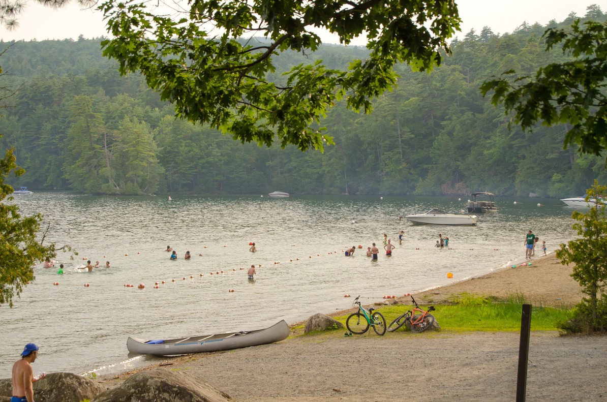 Picnic tables on the shore of Putnam Pond. Photo by John Haywood.