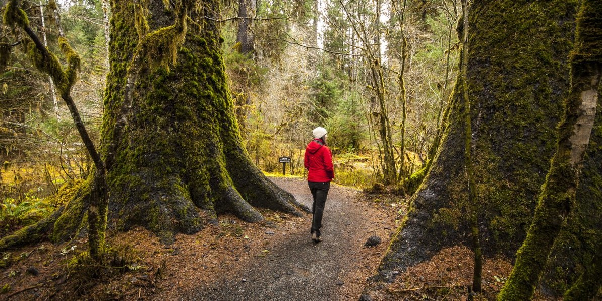 Walking the Hall of Moss Trail in the Hoh Rainforest. Photo by Tyson Gillard.