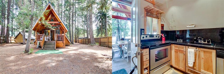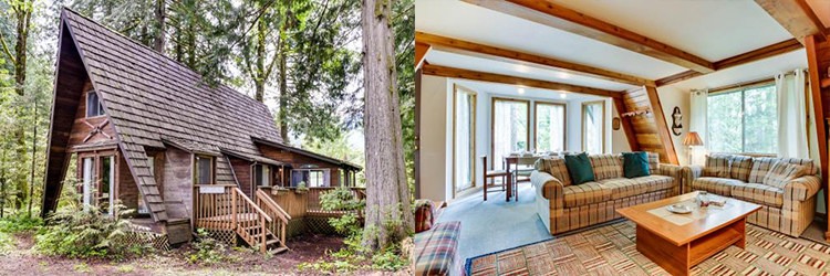 Another classic A-frame in the woods (are you noticing a pattern?), this rustic retreat offers quick access to a variety of activities on Mount Hood, Oregon’s tallest mountain at 11,250 feet. Ski and snowboard at Mt. Hood Skibowl (12 miles east), Timberline Lodge and Ski Area (about 20 miles east), or Mt. Hood Meadows (24 miles east). You can also hike, fly fish, or kayak in the Salmon-Huckleberry Wilderness (go 6 miles south for trailheads). Plus, this home’s location is only 45 miles from Portland, making it a great weekend getaway for active Portlanders.