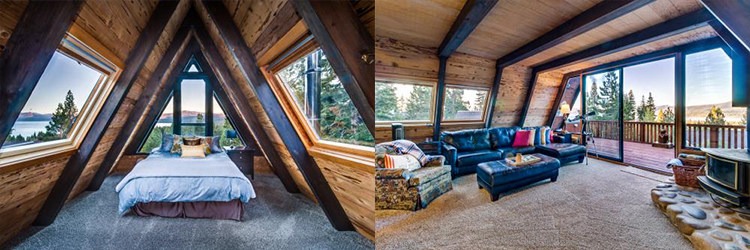 Check this out – another A-frame with a twist: it has a tree growing right through the middle of its outdoor deck! Rent this one-of-a-kind vacation rental and you’ll be just minutes to myriad activities in the surrounding Sierra Nevada wilderness. A popular destination for skiing (Squaw Valley Resort is just 10.5 miles west), as well as boating, kayaking, stand-up paddle boarding and more. Lake Tahoe is just outside your door!