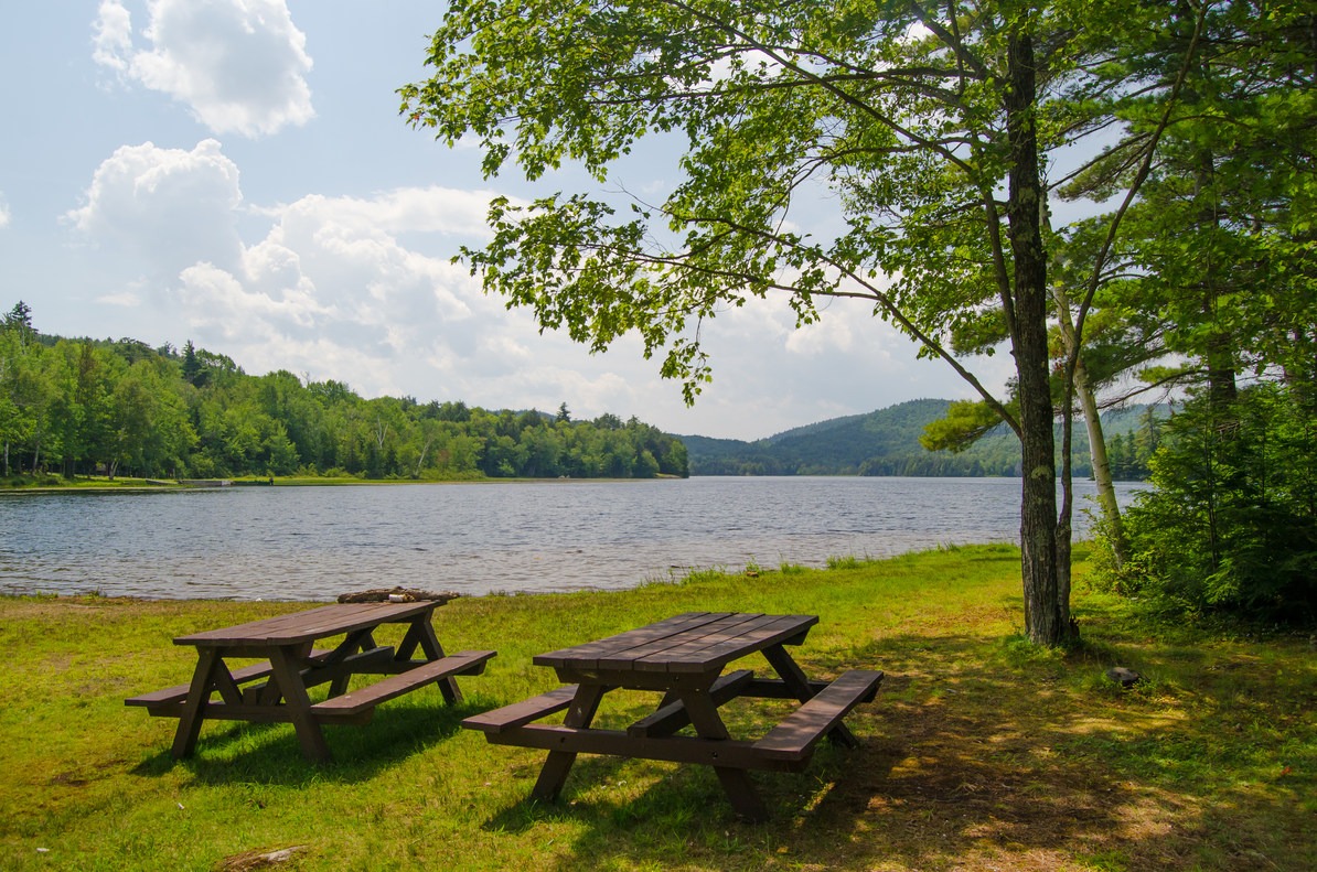 Picnic tabes and grills along Putnam Pond. Photo by John Haywood.