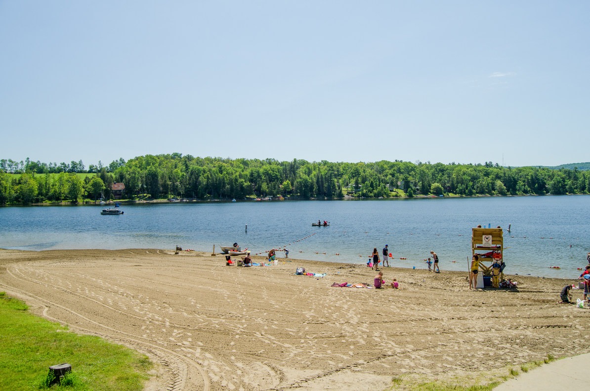 Lake Minnewaska is a beautiful and family-friendly place to go swimming in the summer. The beach itself is staffed from 11:15 a.m. to 6:45 p.m. throughout the season, and swimming is only permitted during this time. There are three roped-off sections to identify different water depths. The beach has a smooth gravel bed that extends into the lake. Take note that no coolers, picnicking, or pets are permitted on the beach.
