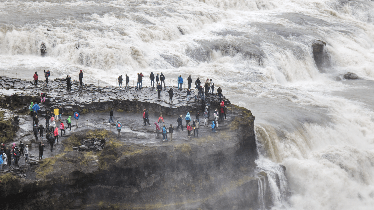 - Gullfoss: This massive two-tier waterfall in the Golden Circle thunders down the Hvitá River and drops 32 meters (105 feet) into the Olfusa Canyon. There is a large rock outcropping near the top of the falls where you can be bombarded with a wall of mist.