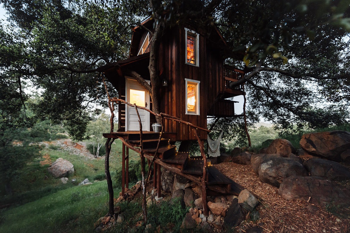 Set up 14 feet high in a fairy ring of redwood trees is the ultimate romantic retreat. This getaway, just outside of Santa Cruz, is stocked with everything you need for a comfortable night in the woods, from a large, comfy king bed to books and board games.