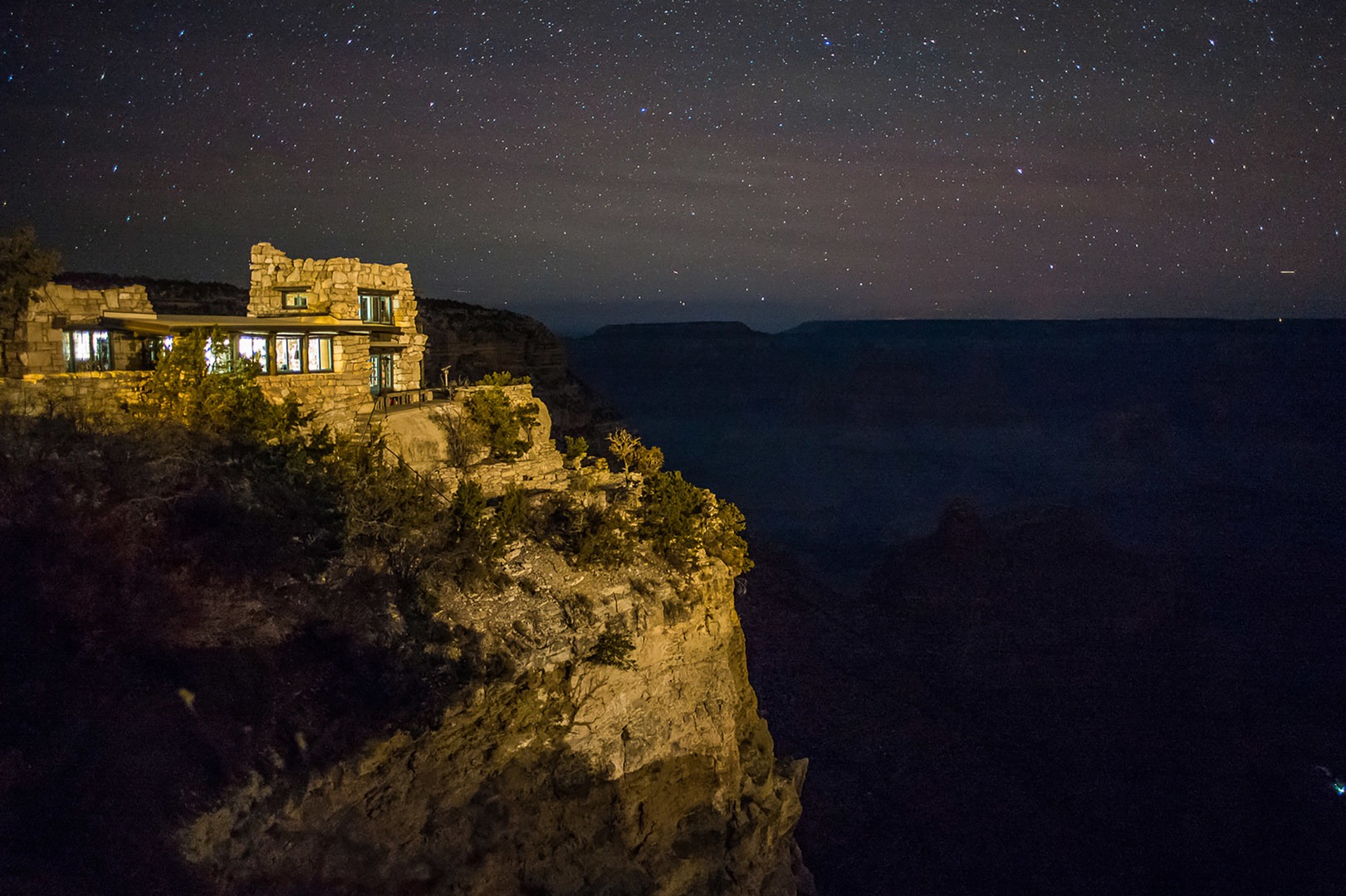 • Bright Angel Lodge: Historic buildings designed by architect Mary J. Colter to artfully mimic the canyon's geology, and located right at the top of Bright Angel Trail. Accommodations range from rustic cabins to modern rooms.