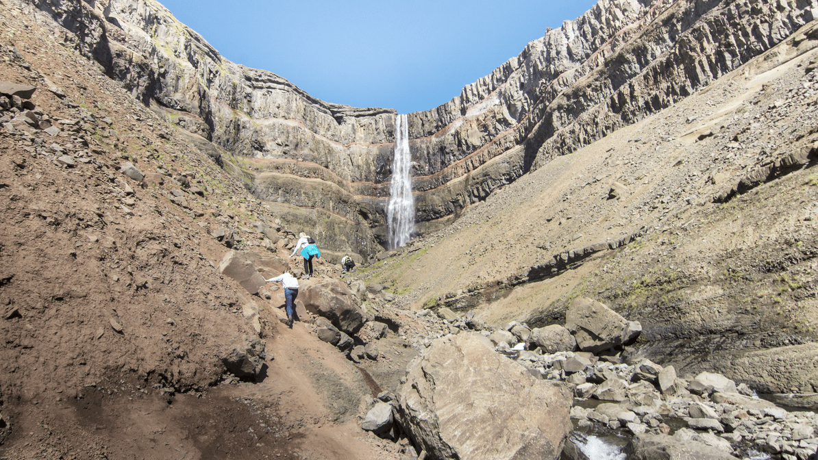 Located in the eastern region of Iceland just outside of Egilsstaðir, these waterfalls flow over a unique and incredible array of geological formations formed during the origins of the island. A there-and-back trek begins near a bridge across the Lagarfljót River and climbs approximately 250 meters (820 feet) over 3 kilometers (1.86 miles) along the Hengifossá River to one of the highest waterfalls in Iceland. Litlanesfoss will appear before you with magnificent vertical basalt columns. Following an eruption, lava hardens and cools, creating hexagonal columns perpendicular to the surface. Hengifoss is surrounded by a series of red-orange layers of clay that are separated by hardened basalt from various volcanic eruptions. These horizontal lines are so striking that they can be seen all the way from the parking area.