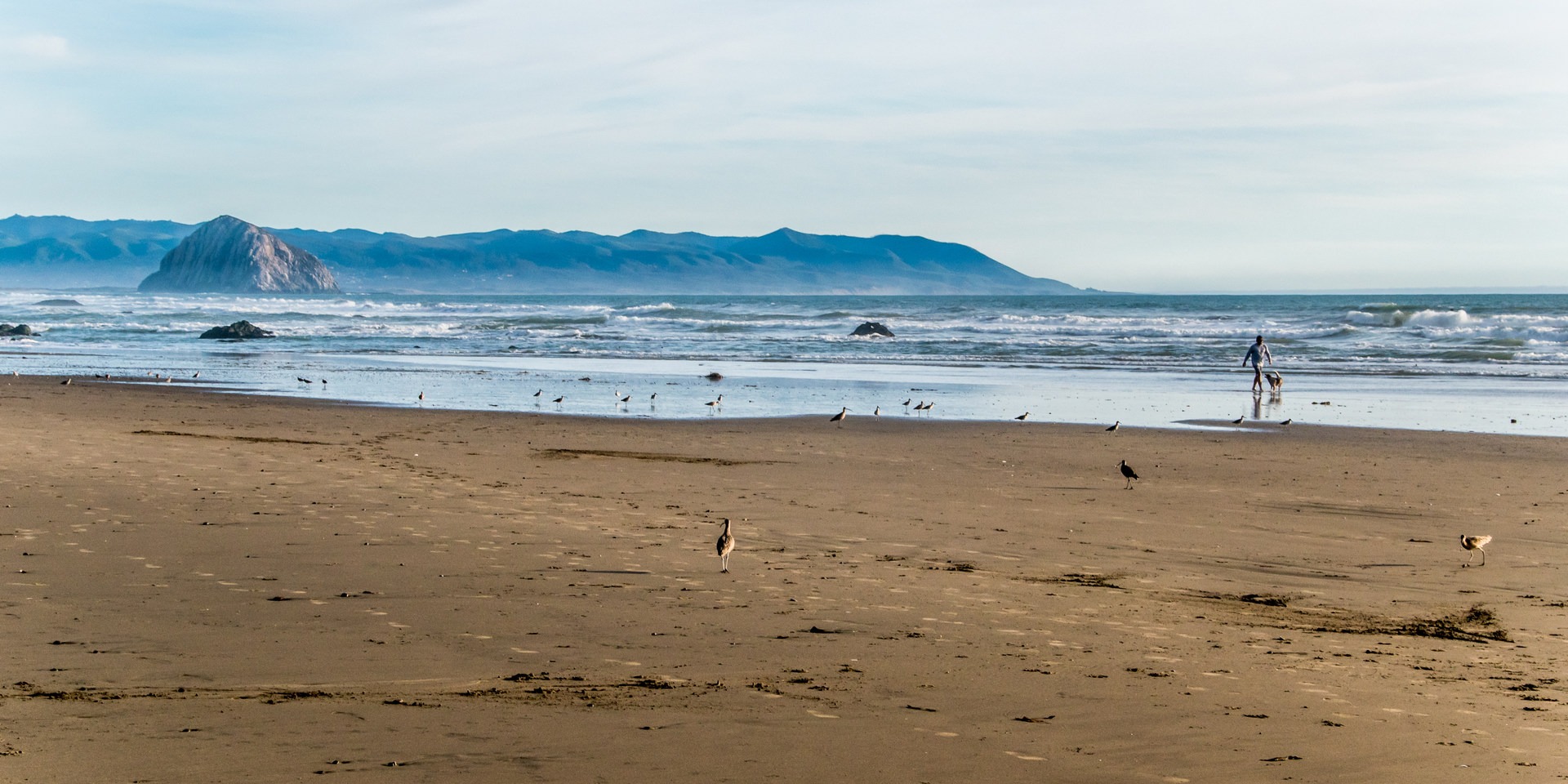 At the south end of the town of Cayucos and adjacent to Cayucos State Beach is a lovely stretch of beach locally known as the Dog Beach. Very wide and flat, this is a great place to walk or run with or without a dog. The iconic Morro Rock stands out in the distance, and the town of Cayucos is visible to the north below the soft hills that line the coast. For the hardy beach walker, it is possible to hike all the way to the town of Morro Bay and Morro Strand State Beach at it's north end, about 3 miles.