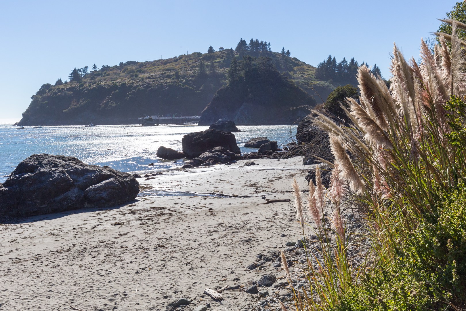 The best current access to Old Home Beach is from the Memorial Lighthouse, a replica of Trinidad Head Lighthouse built to honor and remember those lost at sea. A trail passes by the lighthouse and leads down several flights of steep stairs to the beach. Along the way you will have excellent views of Trinidad Head and large sea stacks to the south. After one final set of unstable stairs you will set foot on the beach. To your right will be some rocky areas and small tide pools, but the majority of the beach lies to the left where the best sands can be found. While visiting Old Home Beach, keep an eye open for harbor seals and sea birds on the offshore rocks.