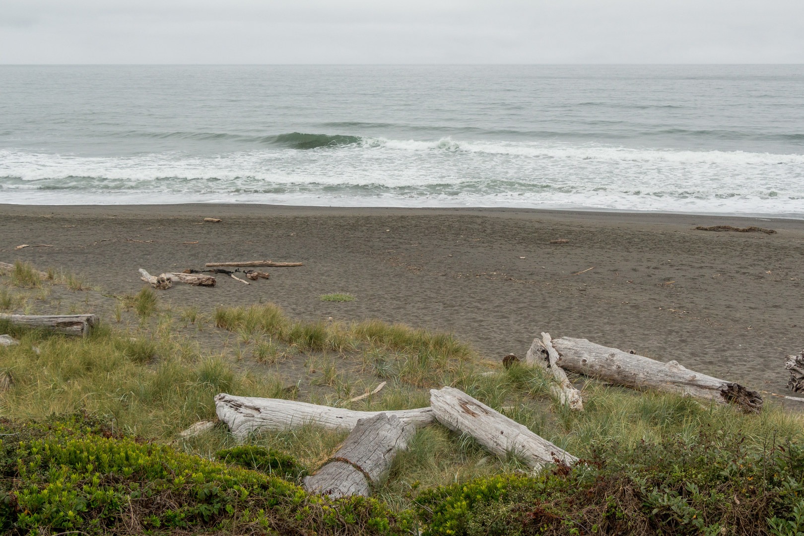 Pelican State Beach is the northernmost beach in California and connects to Crissey Field State Recreation Beach (Oregon's southernmost beach). The parking area and access point is tucked away and hidden from view with no road signs directing your attention to the beach's presence. After driving down a gravel road rife with pot holes, parking can be found on the left side. A short trail leads past blackberry bushes with ripe summer berries and through a grassy section. Here large logs rest, washed up from large swells after being thrown into the ocean by rivers and cliffside disturbances. Another few steps takes visitors onto the beach where one can walk north or south, enjoying this coastal section. If one walks far enough north they will enter Oregon on foot and reach Crissey Field State Recreation Site.