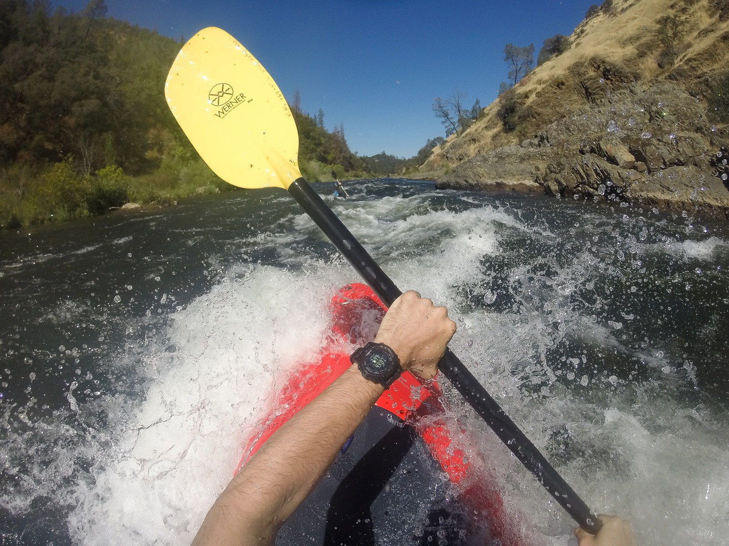 The South Fork of the American River is perhaps the most commercially rafted river in the West, and it is also kayaked frequently. Many Class II and Class III rapids make this river perfect for beginning and intermediate rafters and kayakers alike. The first 6 miles of the South Fork below Chili Bar Reservoir are known as the Chili Bar run. The two sections below Chili Bar are referred to as C to G and The Gorge.