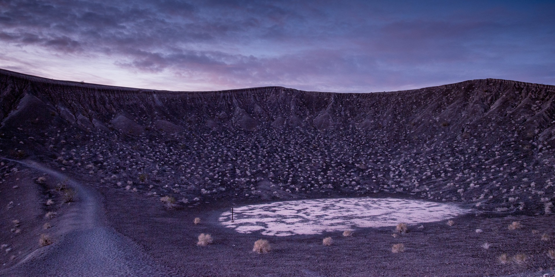 One look at Ubehebe Crater and you would think this half-mile wide, 600-foot deep hole in the ground was the result of a meteor impact long ago. On the contrary, the multiple craters around Death Valley National Park are caused by Maar volcanoes. When these broad, superficial magma pools come in contact with ground water, the water flash boils and creates a massive amount of steam. The pressure builds up until the ground explodes, projecting earth and rock miles away from the explosion's center. Ubehebe is the largest of such Maar volcano craters in the area, and the event that created the crater is believed to have happened as recently as 300 years ago.