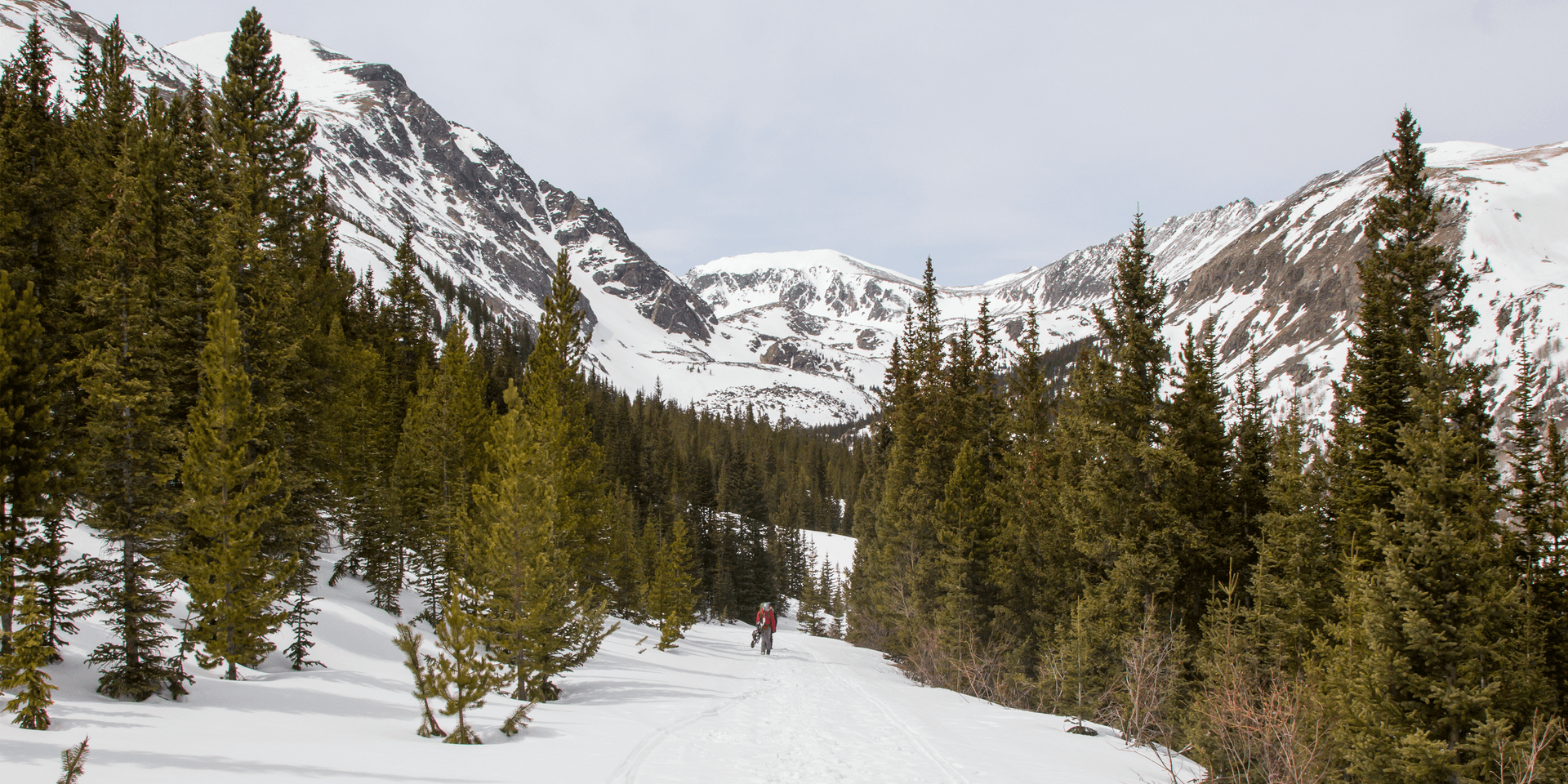 This adventure begins by following the unplowed Summit County Road 851 to the north, gaining a moderate amount of elevation as the road wraps around to the west to enter McCullough Gulch. On a clear day you can enjoy all the surrounding mountains including 14,265-foot Quandry Peak to the south and 13,950-foot Pacific Peak to the north. Quandry Peak was named by some prospectors who were puzzled by minerals found on the mountain's slope. The trail for Quandry Peak will be passed on your left just a little ways after the information signs for this popular climb. If you are looking for some good backcountry skiing or snowboarding, take this cutoff to ascend Quandry Peak and earn some turns off its impressive face. Otherwise continue up the road.