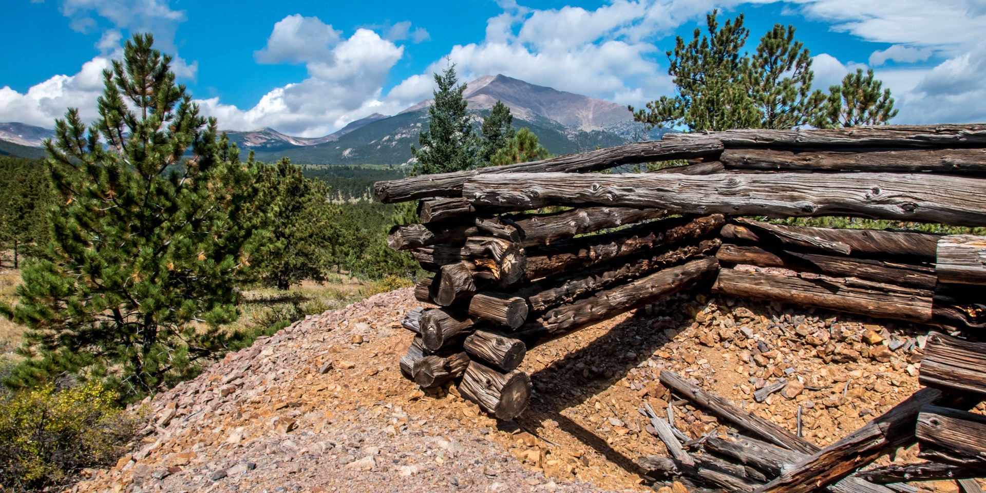 There is room for a few vehicles to park just across the highway from the Business Route 7 turn into downtown Allenspark. The trail heads up a steep slope above the road and settles into a gentle climb over a ridge after a few switchbacks, leaving the road noise behind. The trail then starts dropping gently through pine and aspen forest, offering nice views of Mount Meeker and Meadow Mountain to the west and Twin Sisters Peaks to the north. There are several confusing trails crossing the main trail, but there are frequent markers for Trail 932 to stay on the route. Just before the 1-mile point a log structure can be seen on a low hill near the trail. Easily reached with a short detour from the trail, there is evidence of an old mine opening, now filled in, with an old and degenerating log frame erected over it. No information is posted around it, and it appears to be just another nameless remnant of Colorado’s mining past.