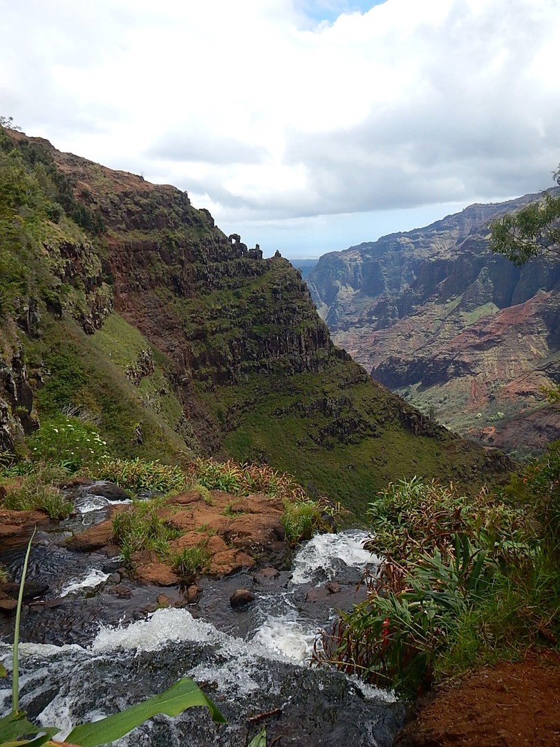 The stream is densely surrounded by kahili ginger that once again creates a feeling of being in a “Tropical Grand Canyon.” While a truly beautiful plant, it is, unfortunately, a highly destructive invasive species. If you head to the left on a faint trail through the ginger, you’ll soon end up at a smaller 15-foot falls. This is a great place to cool off before your trip back. If you continue to to the right on the larger trail, you’ll find the top of Waipo’o Falls. This is a tiered waterfall, so if the river is low, you can actually climb below the first 15-foot tier and shower off here, too. Even climbing down, however, will not provide a view of the falls in their entirety, but it may make your heart beat a little bit faster. Nonetheless, Waipo’o Falls’ magnitude can certainly be felt, and the arched rock formations visible from this vantage point are pretty cool.