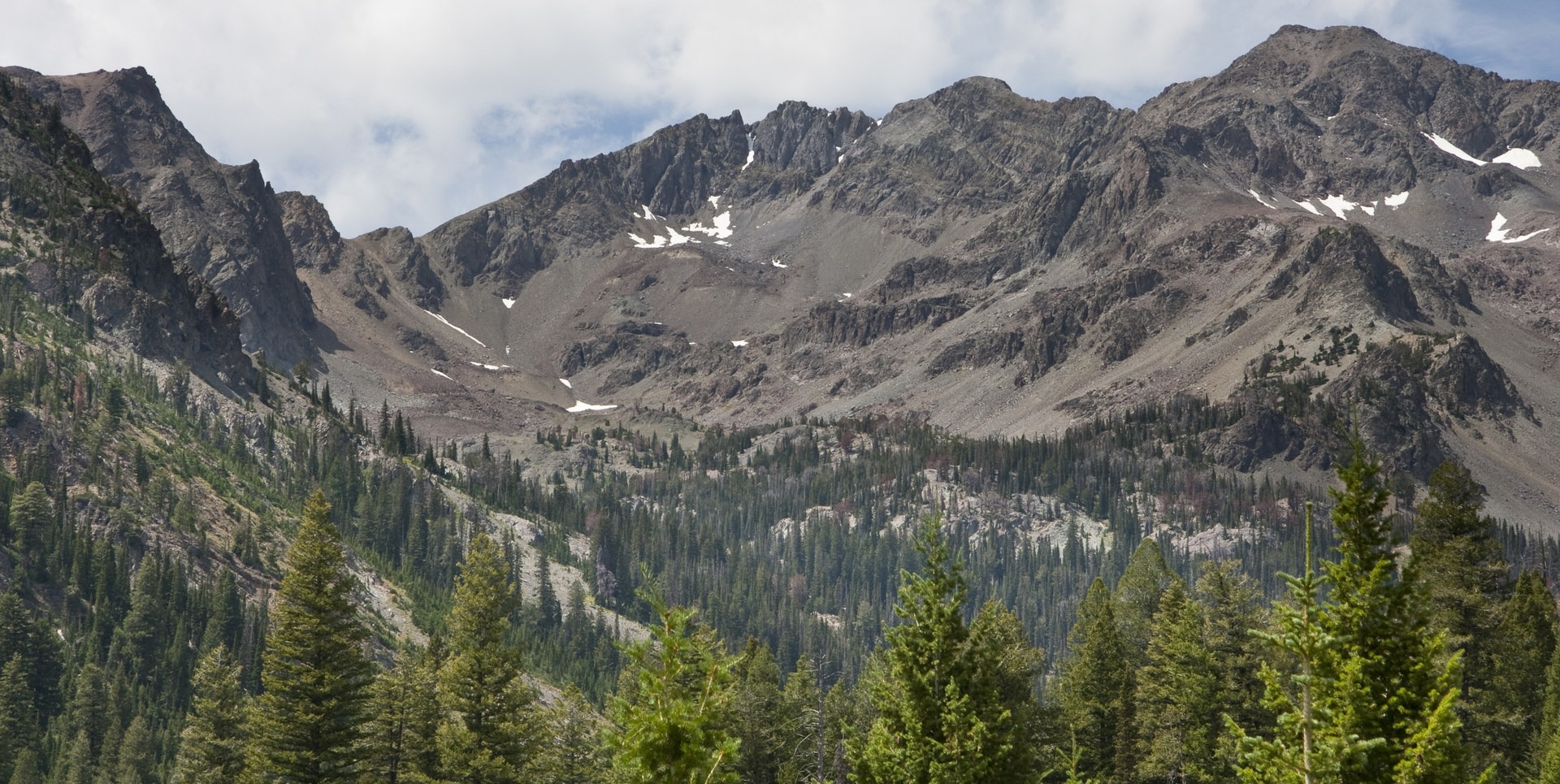 The underlying geology of the North Fork of the Big Wood River is a combination of sedimentary and volcanic rock. Neither is particularly durable, and both rock units tend to break apart. A wide variety of individual rock units provide a wash of reddish and brown hues that blend together in large, sweeping faces of talus and scree in the upper elevations. Below tree line much of the underlying rocks are covered with forests and soil, but the canyon walls are consistently steep down to the valley floor.