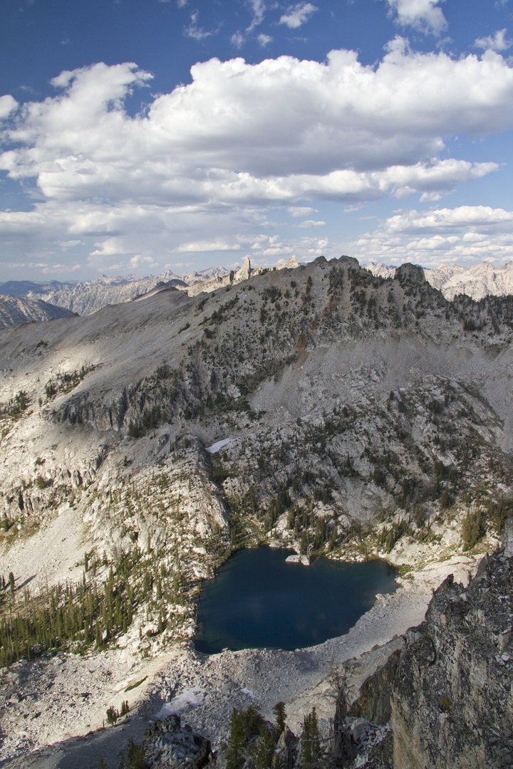 From Pats Lake and Arrowhead Lake, it is possible to climb over the Queens River Divide to Lake 8,696 and then over the Everly Divide into the South Fork of the Payette River to Everly + Plummer Lakes.  This can be done as a day hike, or part of a longer, more extensive backpack route.