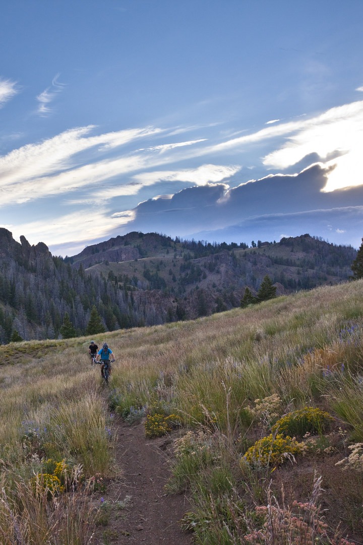 The South Fork of Warm Springs to Red Warrior is a great mountain bike ride contained entirely within the Warm Springs drainage near Sun Valley. It is more remote than some of the more popular rides, so it sees a bit less traffic. Much of the trail was rebuilt in 2009 and 2010, and the crew did an excellent job of creating a moderately challenging, flowy route that makes excellent use of the landscape.