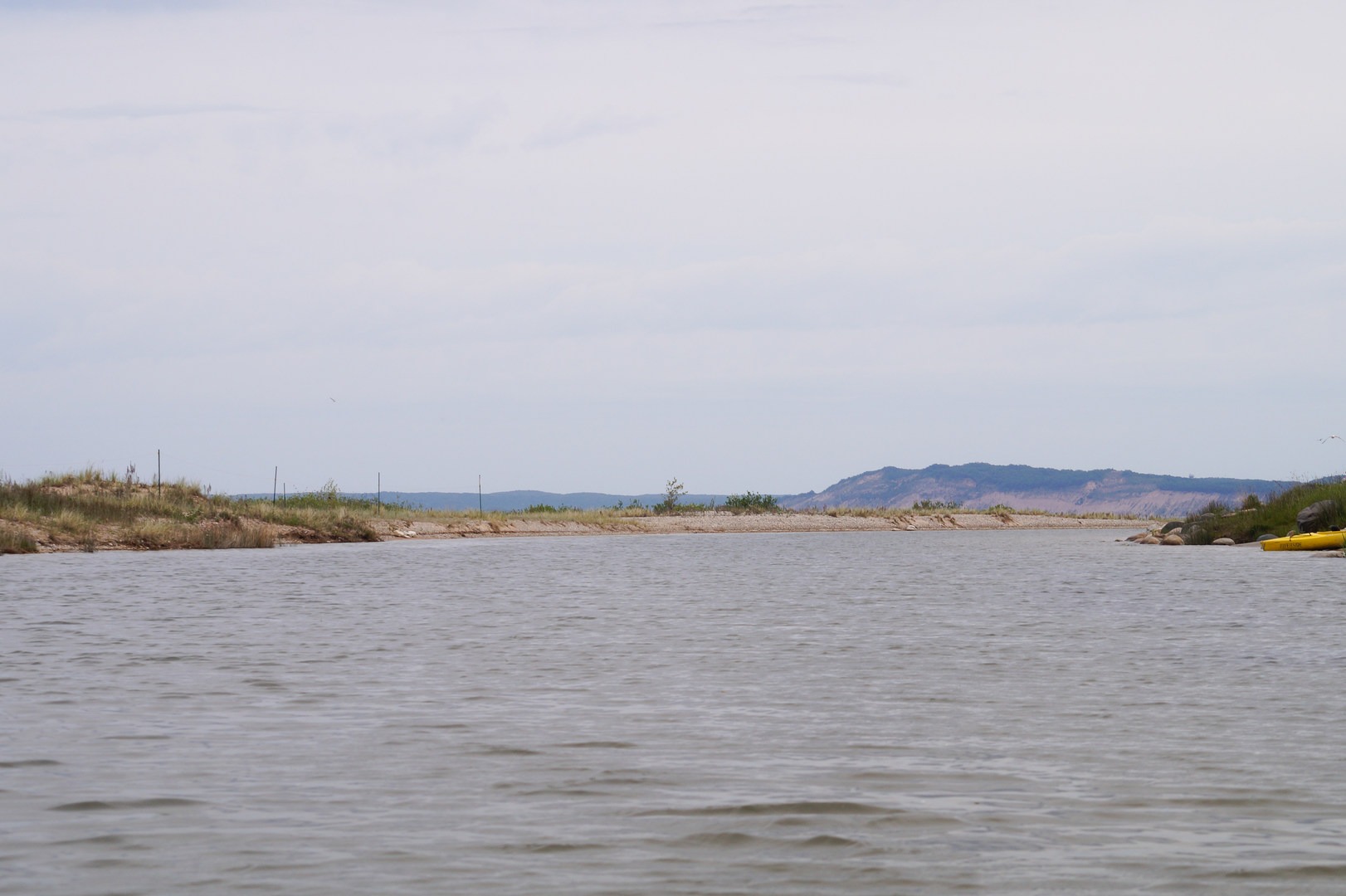 The Lower Platte River Fish Weir is a biology station that is used during the fall salmon run for coho coming out of Lake Michigan to spawn. The Platte River is one of the best coho salmon fisheries in the Great Lakes region and provides excellent salmon fishing in the fall and steelhead trout fishing during the spring spawning run. It is about an hour into your journey and the halfway point. A landing point and restrooms are available here. Landing requires a half-mile portage of gear and watercraft to the road because the access gate is only opened in the fall during the salmon run.