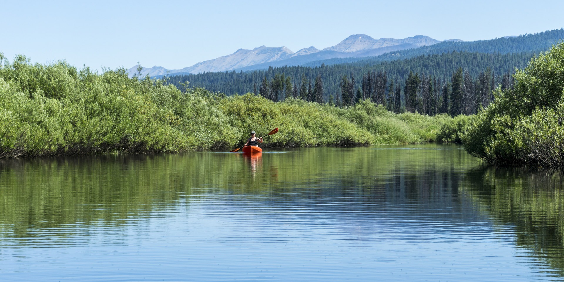 The Forest Service provides a put-in spot on a designated canoe/kayak river trail on the Clearwater River above the inlet to Seeley Lake. This route is flat and unobstructed with fabulously clear water all the way to Seeley Lake. Turtles are plentiful, as are a variety of birds. There are a few alternate channels along the way to explore, with ever-changing views of the surrounding woods and mountains. There are not many places to land a kayak on the river due to overhanging brush and swampy terrain, but the lake has miles of shoreline to explore with lots of beaches and take-out spots. The entire upper 80% of the lakeshore is national forest land with some private leases.