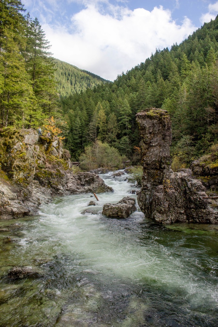 Boaters normally refer to this upper reach of the Little North Fork Santiam as Opal Creek: While the run is referred to as Opal Creek, the standard run from the mine put-in down to Three Pools, is actually on the upper Little North Santiam River. Boaters rarely venture into Upper Opal, or “Opal Proper,” which is above this stretch.