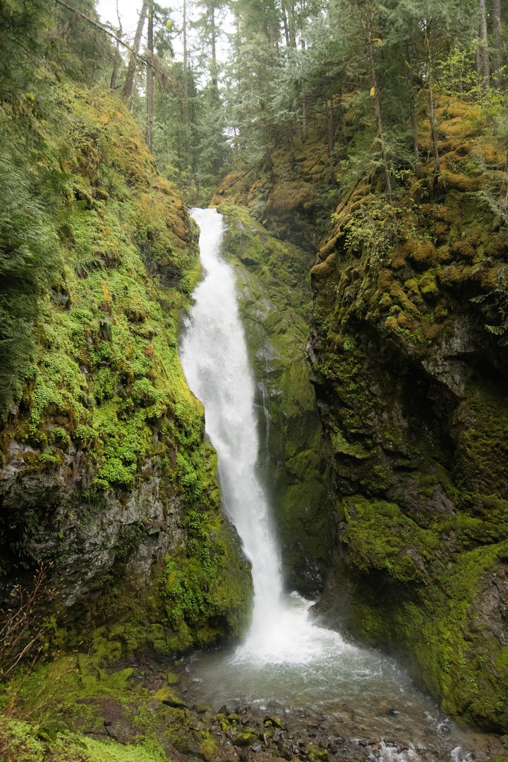 Originally discovered by timber prospectors, Pinard Falls was only known to locals willing to venture off the beaten path. Luckily the falls became accessible by formal trail in 2007, making it the first new trail in the Umpqua National Forest in 12 years. Part of the Row River drainage, the 105-foot Pinard Falls is the result of water from the Layng Creek forcing its way through a notch in the surrounding basalt before plunging into the pool below.