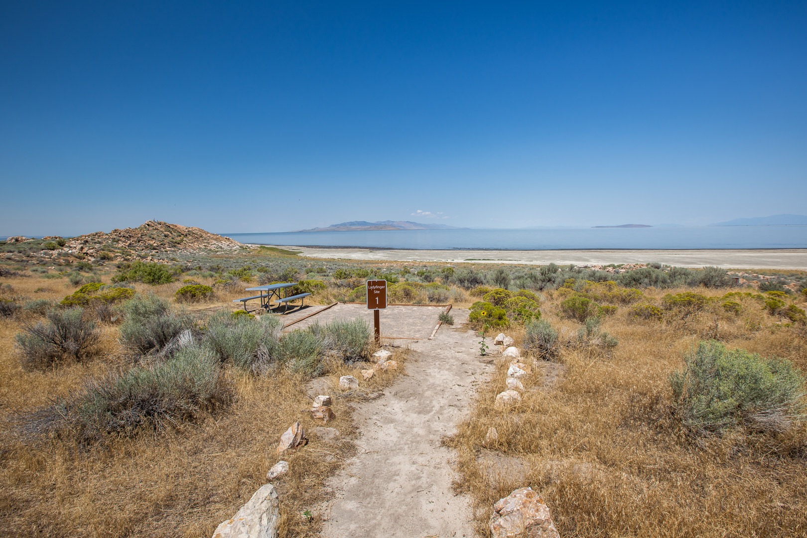 Ladyfinger Campground is the smallest of the four campgrounds on Antelope Island State Park aside from the Lakeside Group Campsite, which is for a single group. It's a great campground for smaller groups that has great views of the lake and even offers shade shelters. From the campground, there is a short 0.2-mile trial that leads out to Lady Finger Point for additional views of Bridger Bay Beach and the Great Salt Lake.
