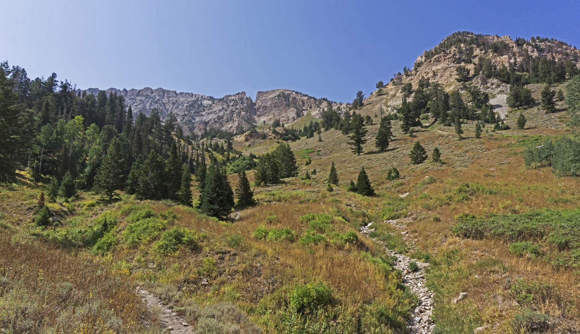 The first stretch is lined with a heavy forest, and then you'll reach the open meadows and work your way north along the face of the mountain. You have two major lookout points along the way that give you great views down toward the Great Salt Lake as well as up canyon to the beautifully layered sediment of the peaks. In the early summer the snow-capped peaks feed dozens of small waterfalls and the wildflowers that cover the hillside. South Willow Lake is a medium sized body of water in a picturesque caldera with high cliffs above and backcountry campsites on the north shore.