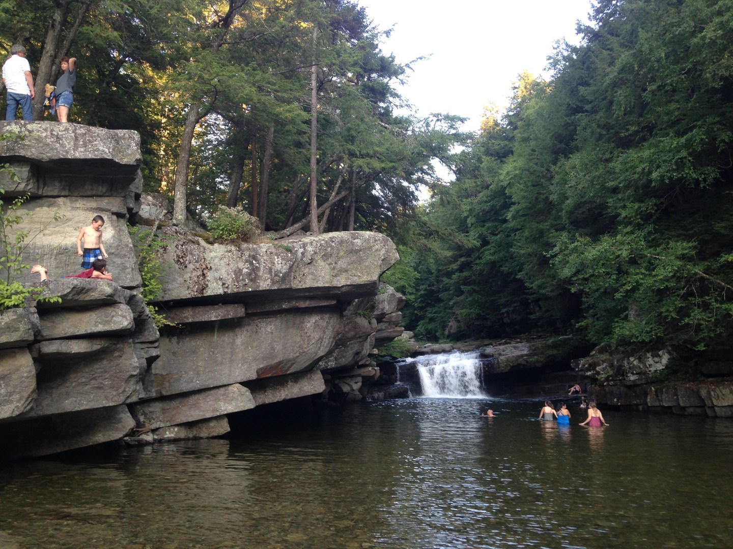 Cliff jumping. Variety of swimming hole depths. Waterfall. Cave to explore.