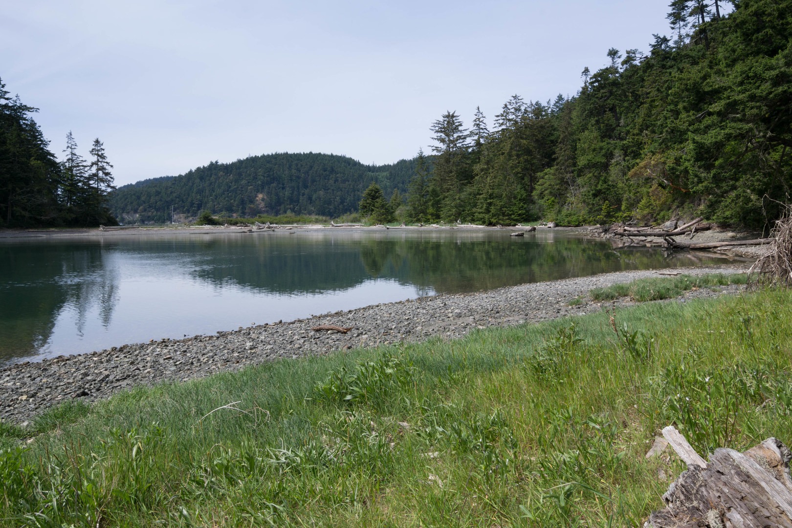 Although only narrowly separated from Bowman Bay by a sandy spit of land, Lottie Bay has a character all its own. The waters don't directly open into Rosario Straight, as do Bowman's, and the bay is protected by Lighthouse Point, so the waters are calmer. Seals are known to spend some time in the bay, and the many driftwood logs make great perches from which to observe them. The mellow waters are great for wading or swimming, just be aware that you may be sharing the space with the aforementioned marine life. Indeed, Lottie Bay feels like the quieter little sister of Bowman Bay.