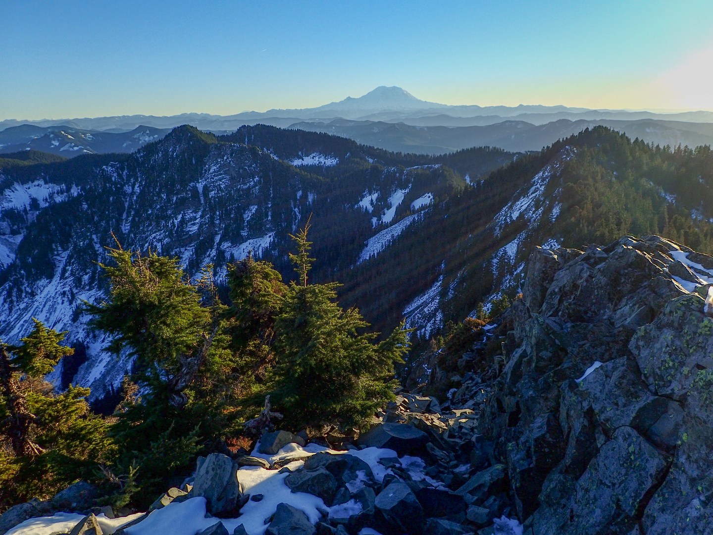 From the trailhead the route leads through a variety of old-growth and second-growth forest where there are huge evergreen trees that tower above. The trail is very well maintained, and ambitious hikers can use it as a good jog for mountain climbing conditioning. During your ascent you will pass several avalanche gullies (use caution when traversing during winter conditions). The final half-mile of the trail circles the southwest side of the mountain ridge where you will notice a large rocky summit block. Do not fret, as this summit block offers great handholds and plenty of places to put your feet to keep you feeling safe. This is some of the best climbing/scrambling you could hope for, though exposure is significant.