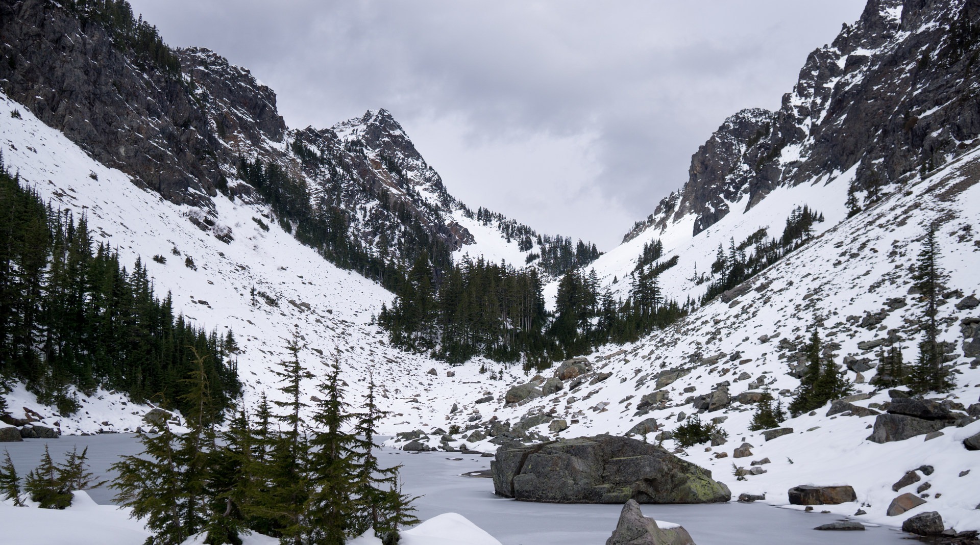 To access Upper Melakwa Lake, look to your left as you approach Melakwa Lake and find the route that cuts north across the slope that creates the western shore. In order to proceed across this slope, you will first have to cross the Melakwa Lake outlet at the southwest corner of the lower lake. If the snow level is low enough, you will be able to see the logs you are crossing; if not, step cautiously. Continue across the slope until it reaches the north portion of Melakwa Lake, when the route descends to a small peninsula. Keep north as you cross the narrow band of land separating the two lakes, and soon you'll reach the south shore of Upper Melawka Lake. You'll find lots of nice flat rocks surrounding the lake that are perfect for a break. Take a moment to relax and enjoy the views of Kaleetan Peak to the north before returning by the same route.