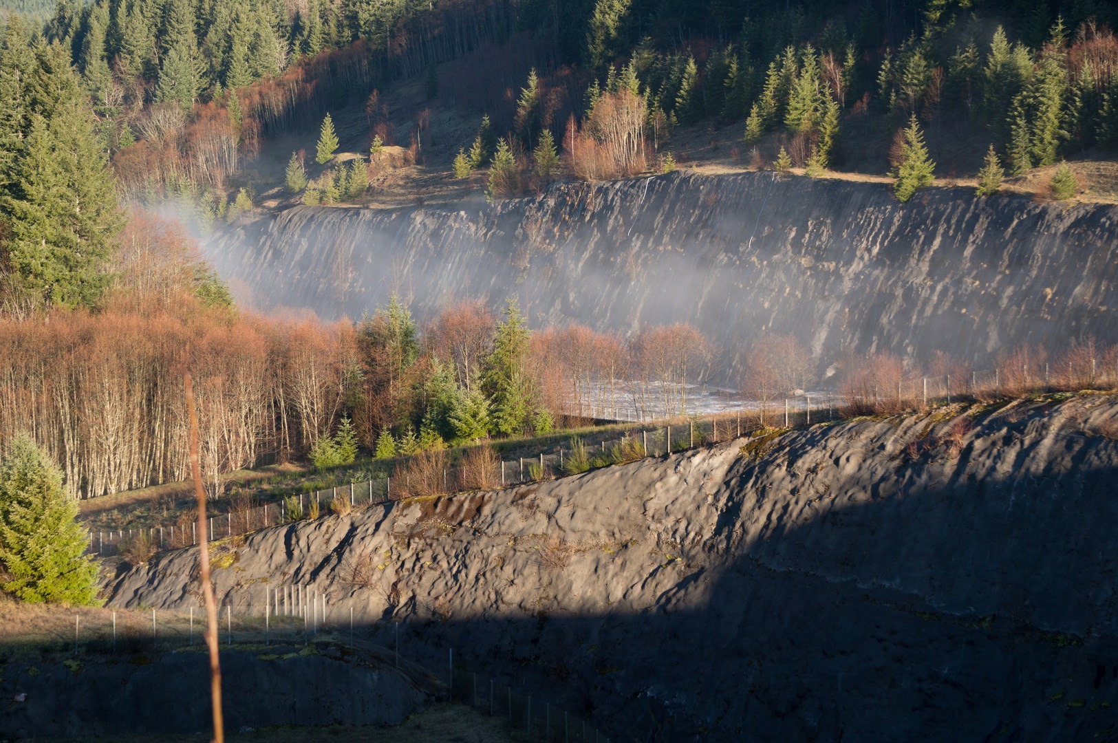 The hike to the sediment dam starts from the parking lot on Stewart Dam Road, 31 miles west of Johnston Ridge Observatory along Spirit Lake Highway (WA-504). Just a few yards from the trailhead is a viewing platform. Another mile of hiking along a quiet forest path lined with sword ferns brings you to a the dam itself. You can continue along the dam until the gated maintenance entrance to the spillway. Looking upstream you have the chance to spot migratory birds in the sediment basin. Downstream is a meadow where lucky observers may spot larger fauna.